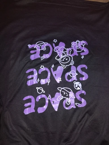 Machine wash cold with similar colors. Tumble dry low or hang to dry. Iron on low heat if needed, avoiding direct contact with printed areas to preserve the space bear graphic.